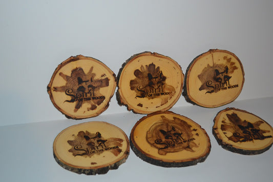 Balm of Gilead Log Coasters Set of Six With Wood Burned Spirit of the Woods Logo Set of Six