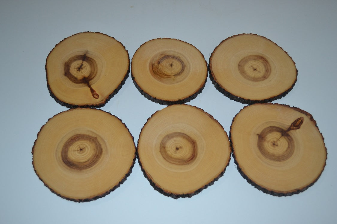Aspen Log Slice Coasters set of six, with bark that will not separate!