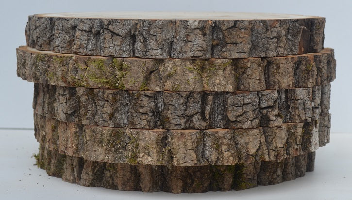 Log Slices 9" to 11" diameter x 1" thick. Wood Slices with Bark