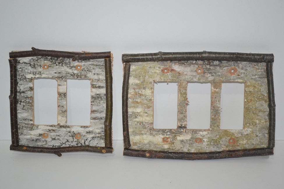 Birch Bark Switch Plate, Receptacle & Rocker/GFI Cover Plates handcrafted by us here in the Western Maine Mountains.