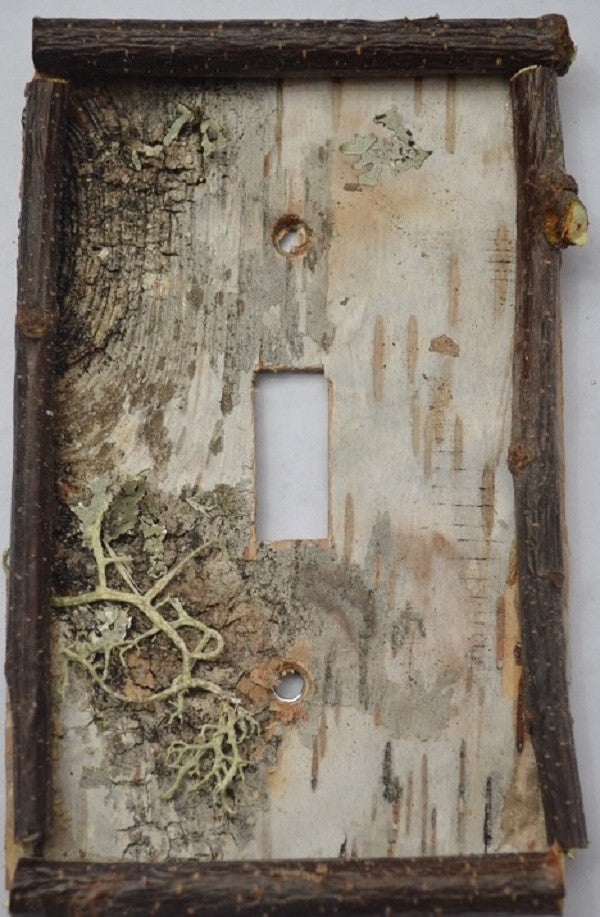 Birch Bark Switch Plate, Receptacle & Rocker/GFI Cover Plates handcrafted by us here in the Western Maine Mountains.