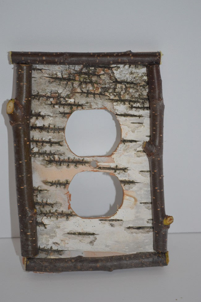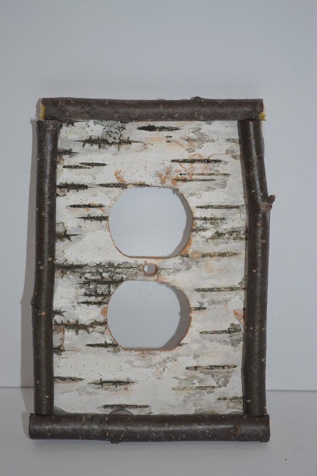 Birch Bark Switch Plate, Receptacle and Rocker Plate with Sticks