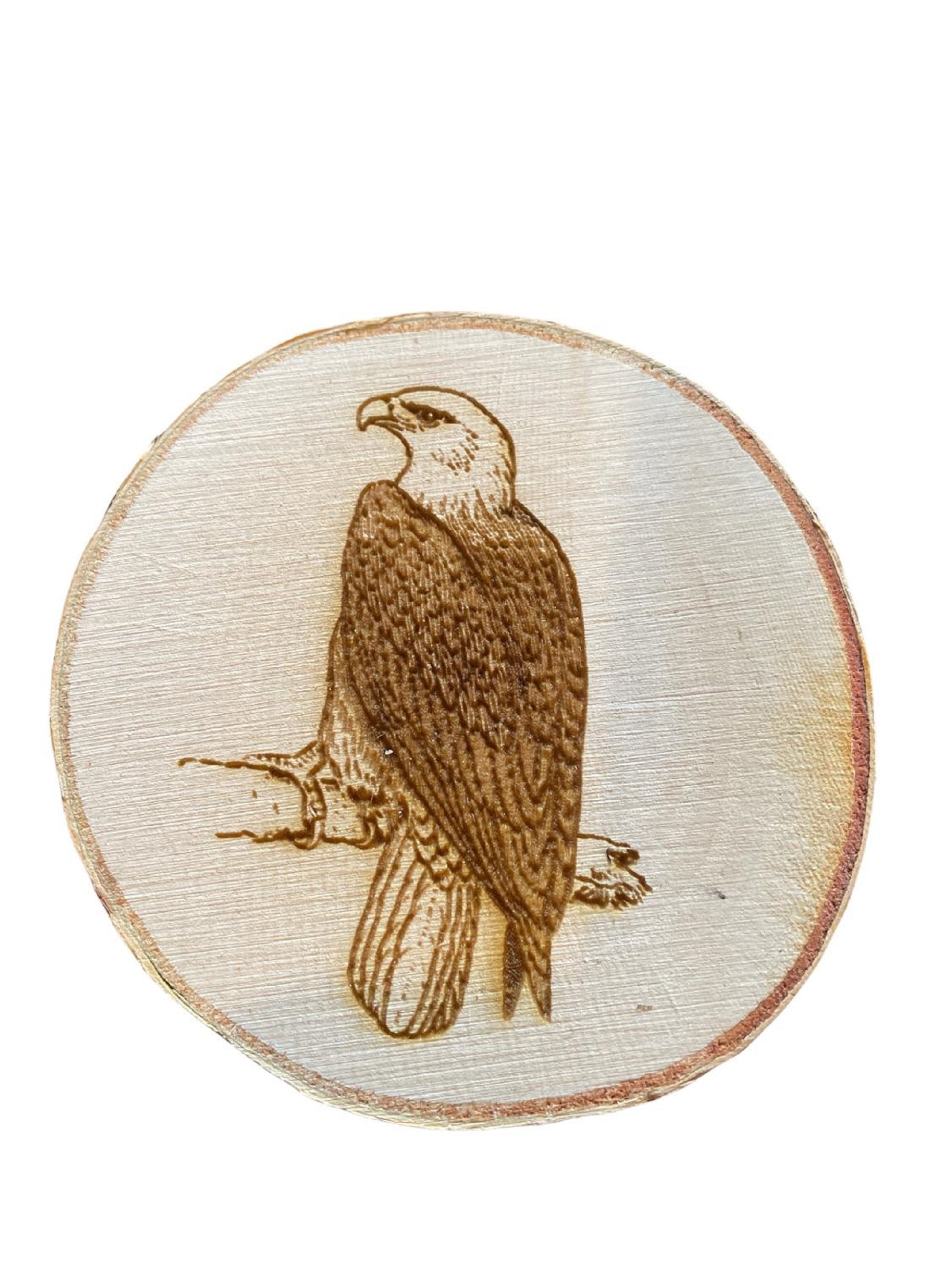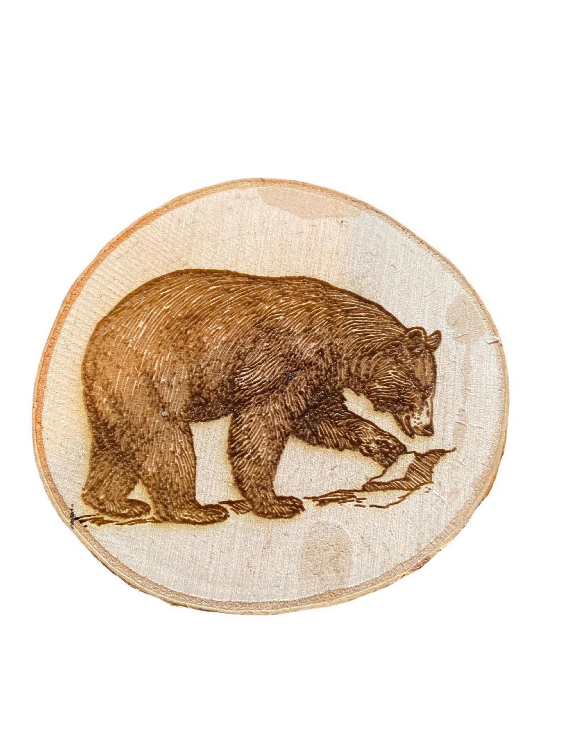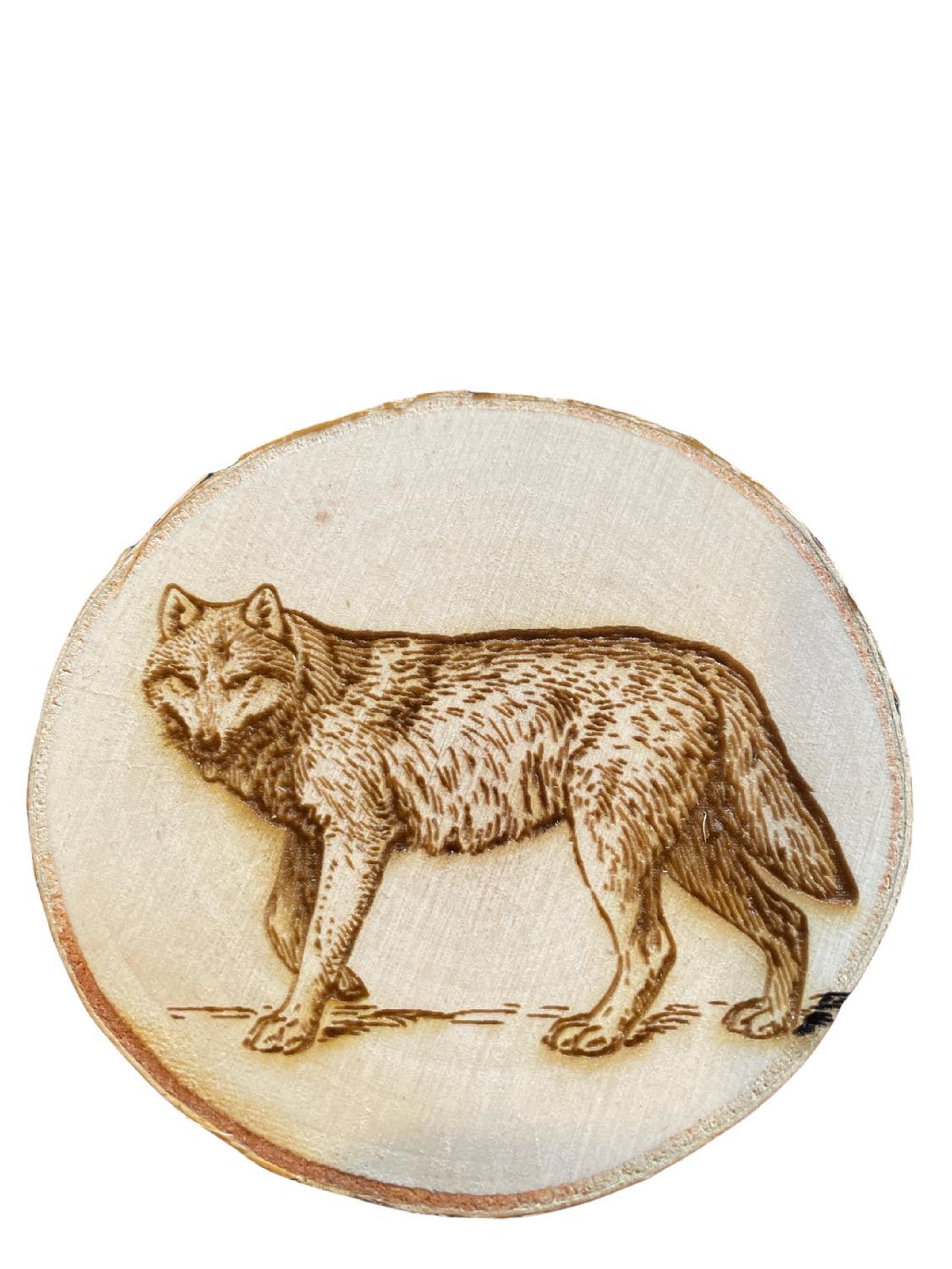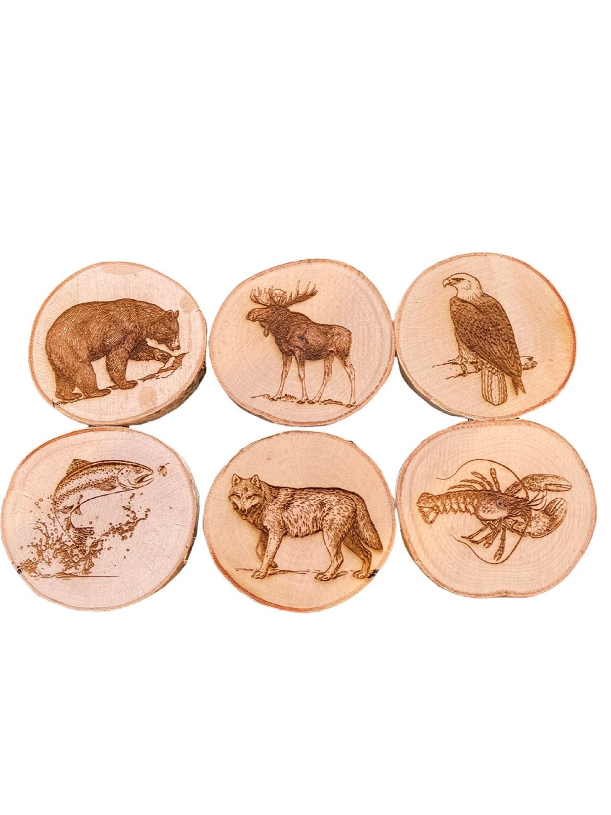 Engraved Birch Log Slice Coasters North American Wildlife 3 1/2"-4 1/2" Diameter Set of Six