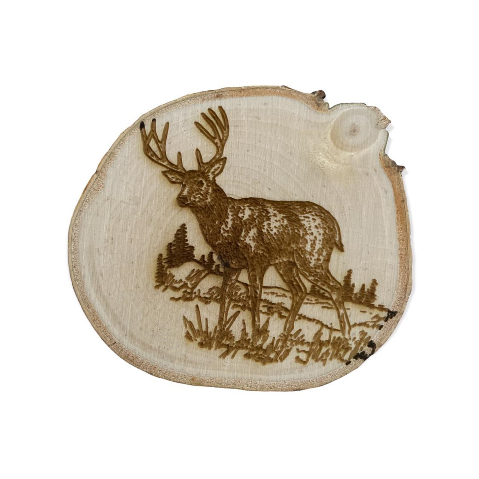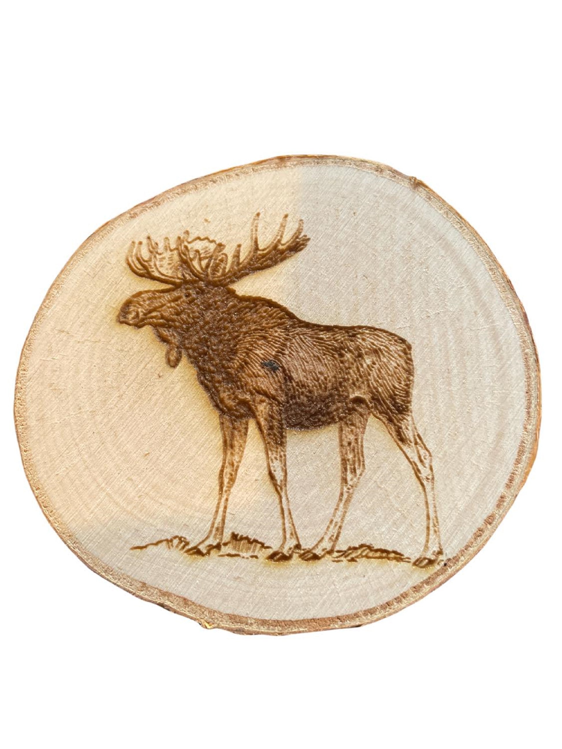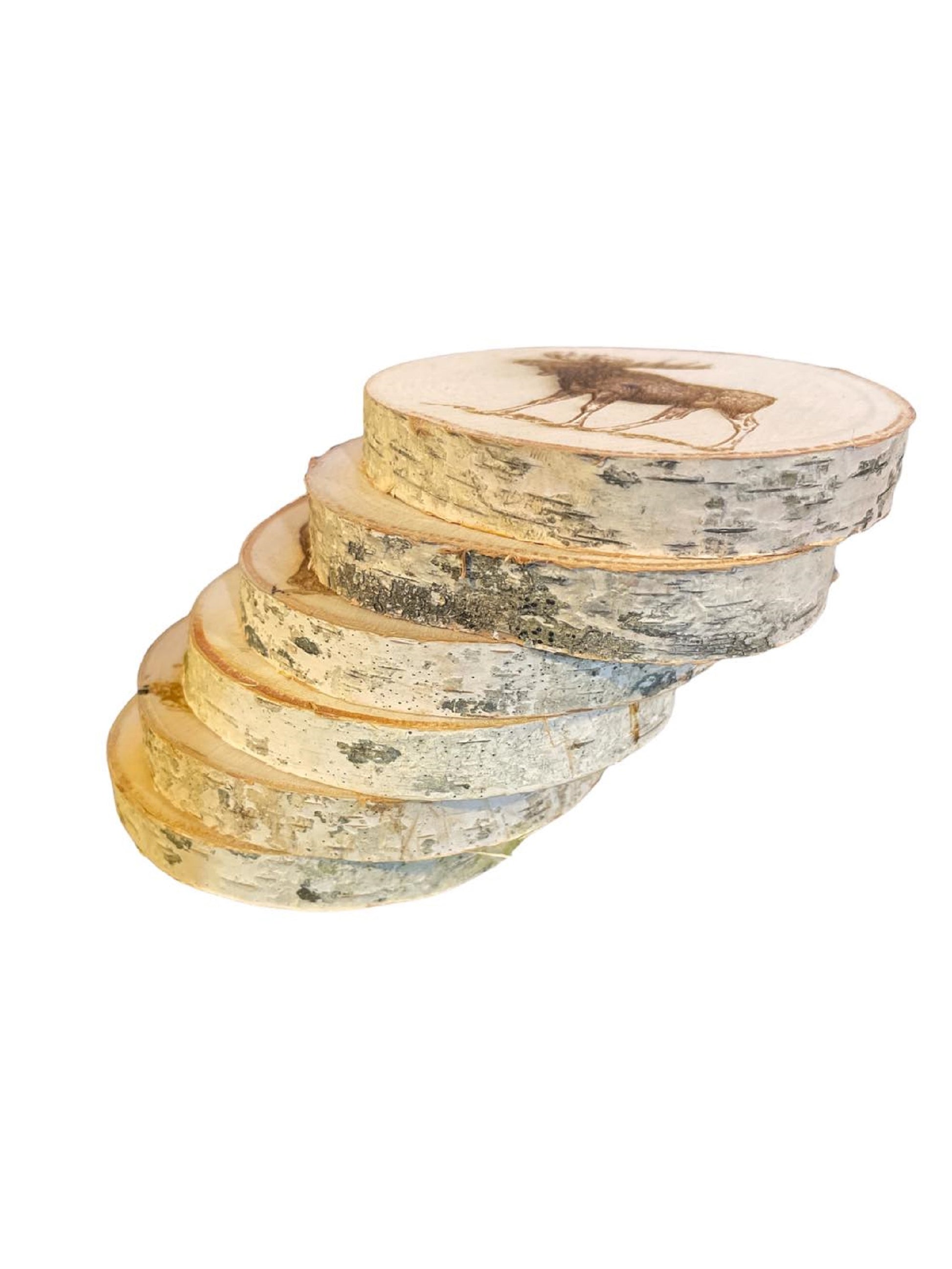 Engraved, Wild Life Birch Log Coasters. Set of six.